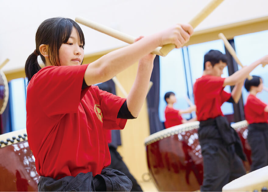 部内で大事にしていることは、「挨拶」「向上心」「思いやり」「協力」そして「感謝」です。観に来てくださった方々に「勇気」と「感動」を与えられるパフォーマンスが出来るように、日々練習に励んでおります。発足4ヶ月で『たまてやま音楽祭』に出演させて頂きました。また、キャンパス内のTama Squareでゲリラライブなどもさせてもらっています。これからもっと活動の場を広げ、和太鼓の魅力を発信していきたいと思っております。