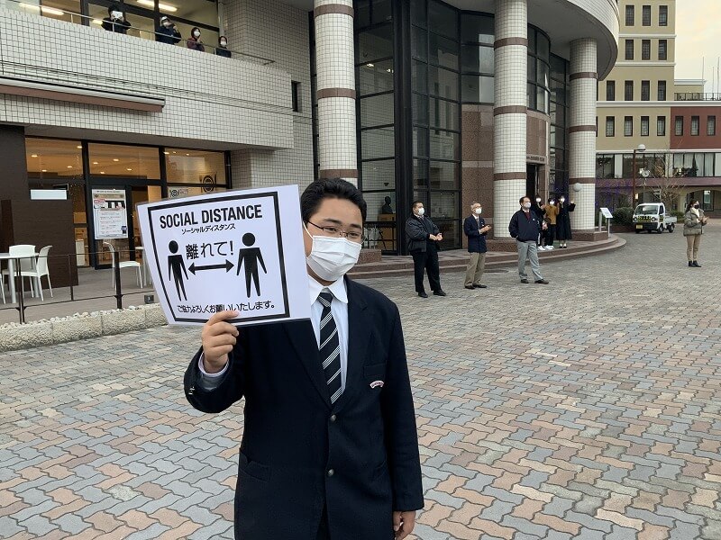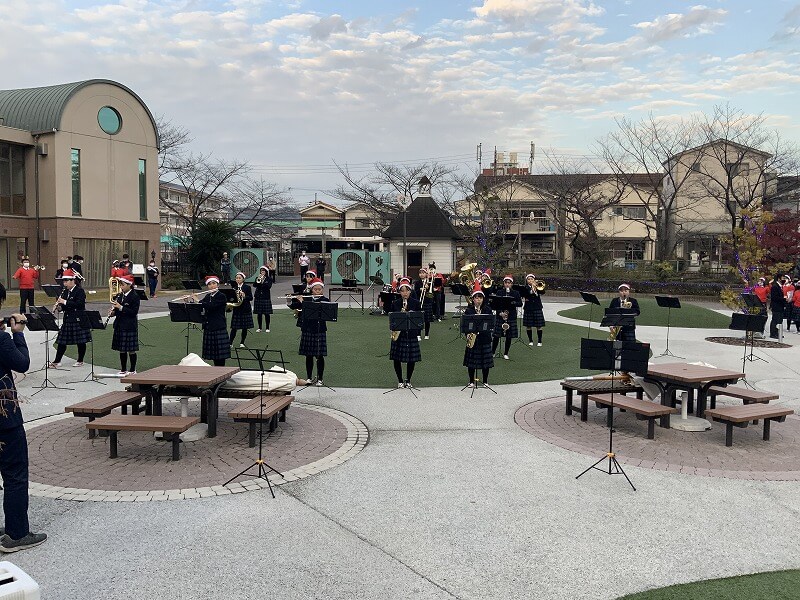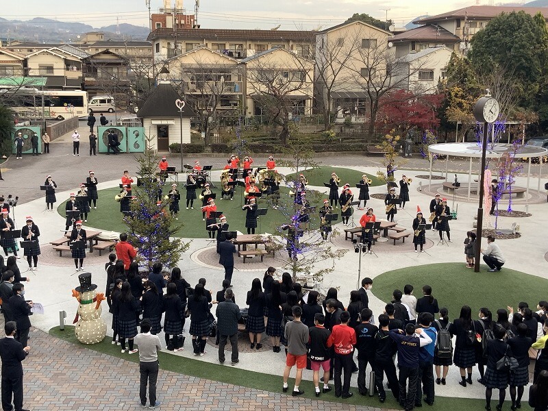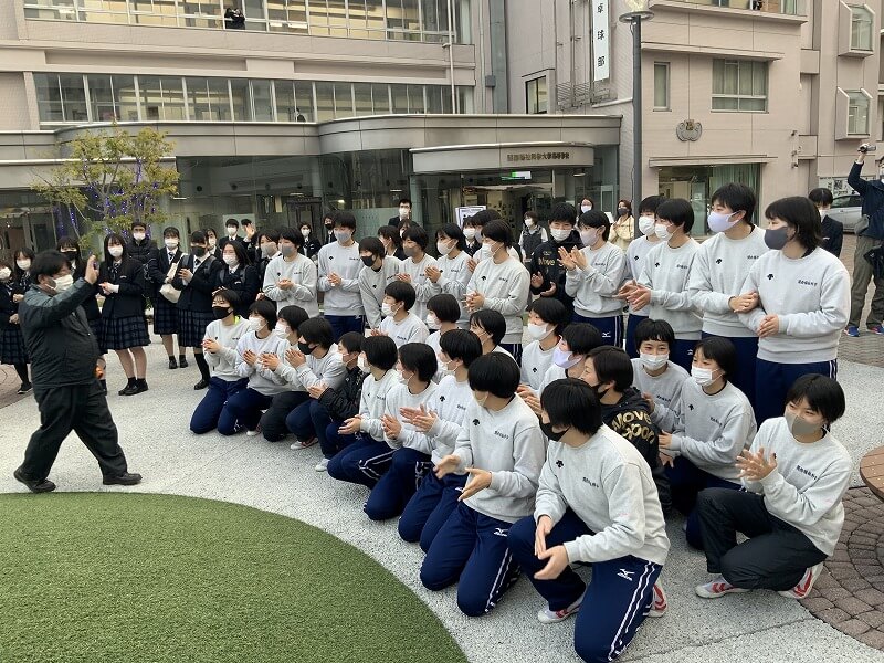 寒空のなか,下校途中の生徒や本校教職員,学園職員が足を止め,演奏に耳を傾けました。新型コロナウイルス感染防止対策のため,観客の歓声はなかったものの,クラップで会場は盛り上がりをみせました。