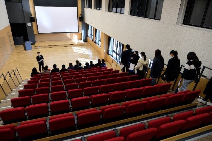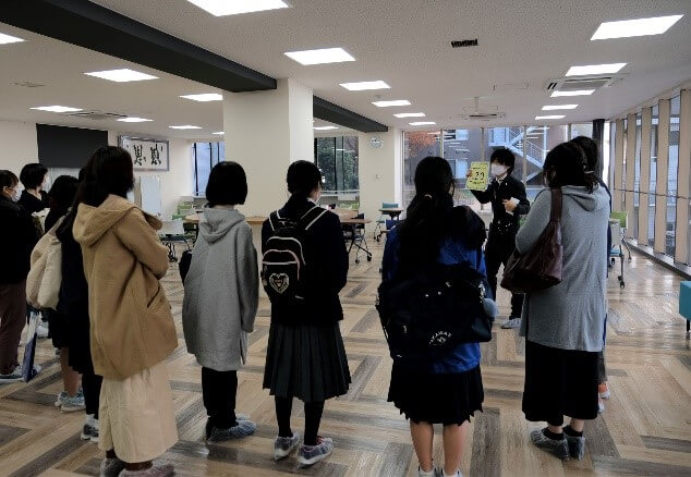 た。その後、本校の教育内容や進路等についての概要説明をしました。 施設見学では、少人数のグループに