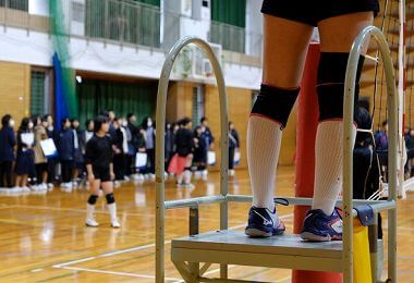保育コースの班は、付属幼稚園の園舎を見学 第2体育館;この日は中学生を招いて練習試合