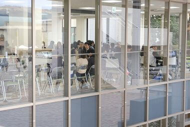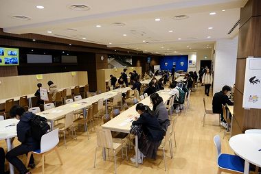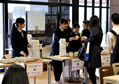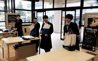 保護者の方のメッセージの後、各班に分かれて校舎見学を行い、最後に今年リニューアルしたタマカフェ(学園食堂)で、「ホッと一息」ついて頂きました。