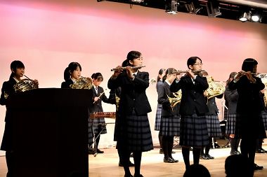 吹奏楽部の演奏でスタート 理事長より玉手山学園の紹介