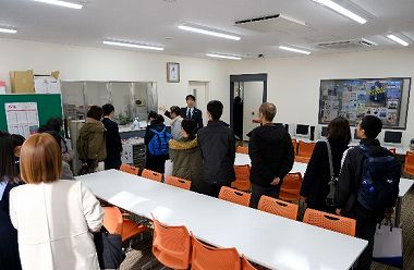 この後、グループに分かれて、校舎見学を行いました。保育コースの班は、付属幼稚園の園舎を見学